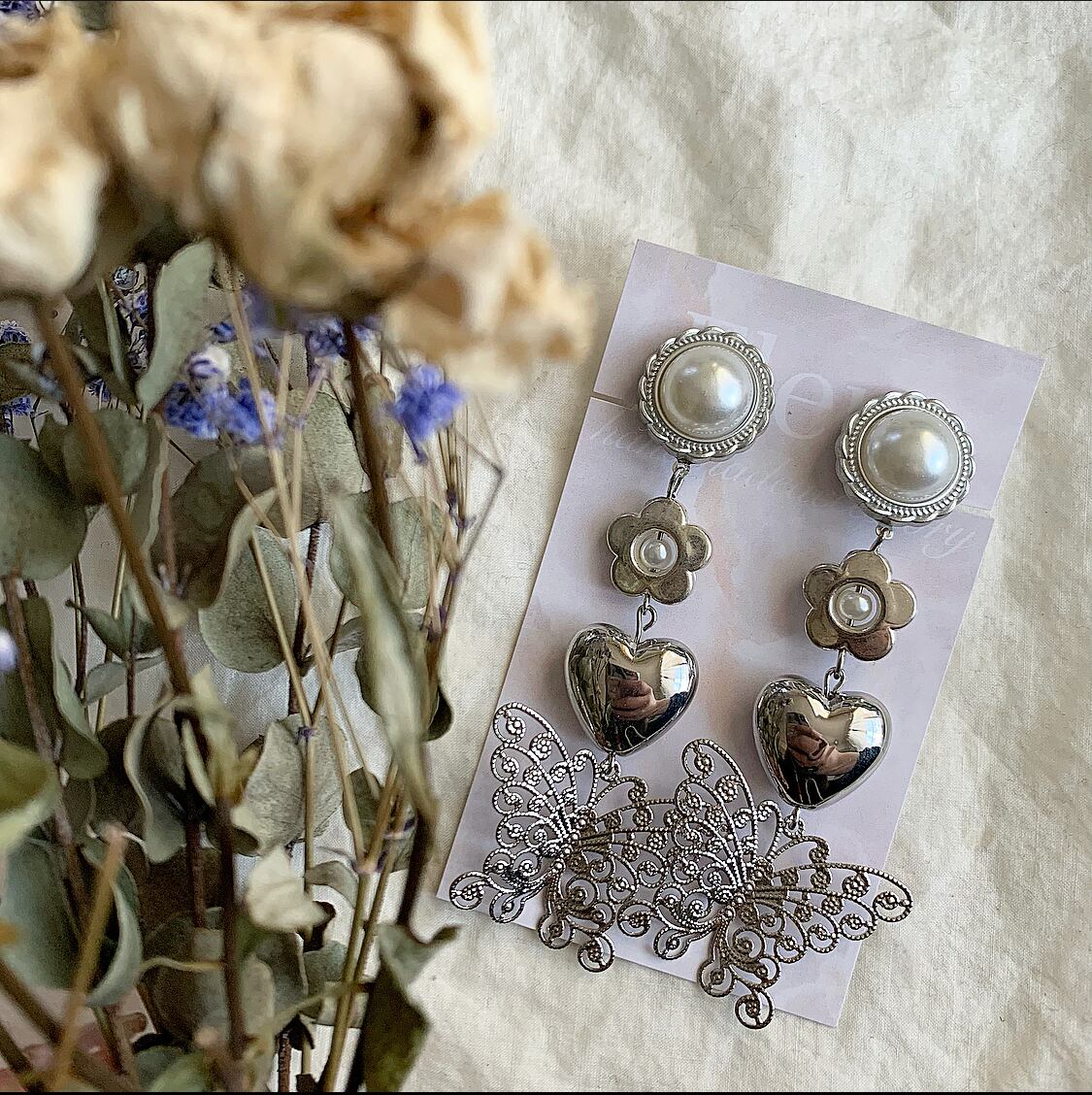 シルバー蝶々イヤリング