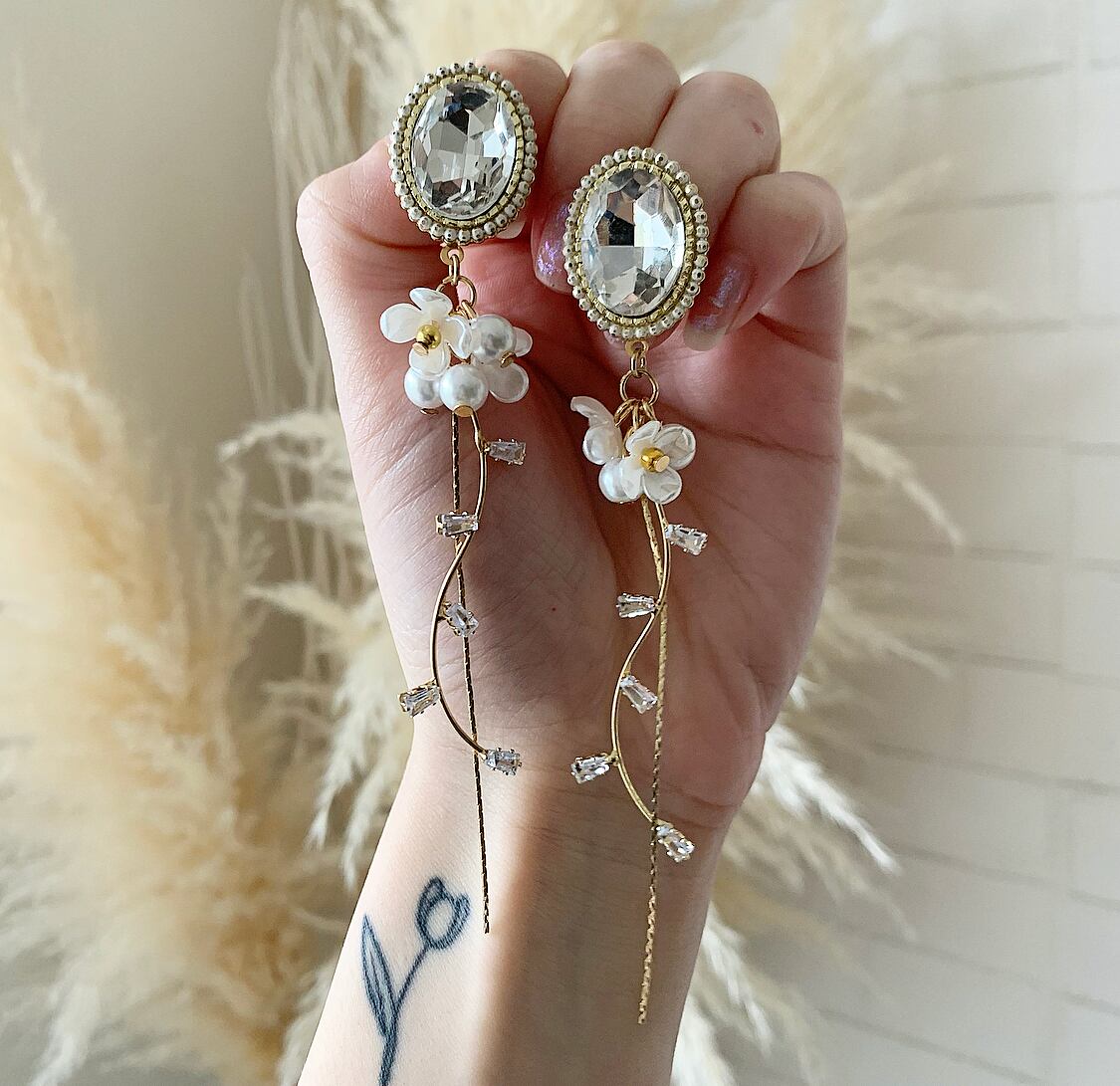 #チェーン#大振りピアス#揺れるピアス#クリアピアス